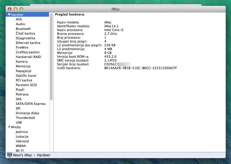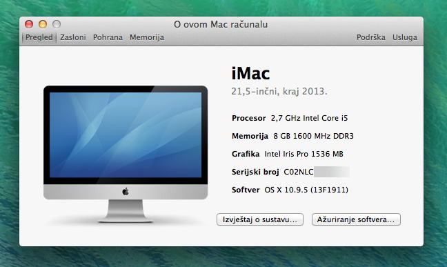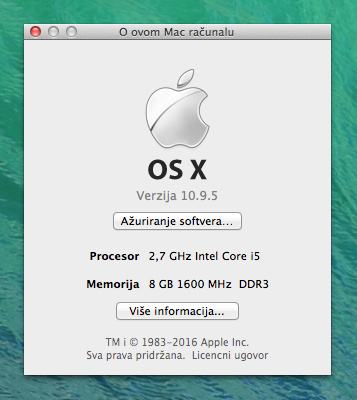 - Operativni sustav: macOS 10.9.5 (moguća nadogradnja na viši macOS)