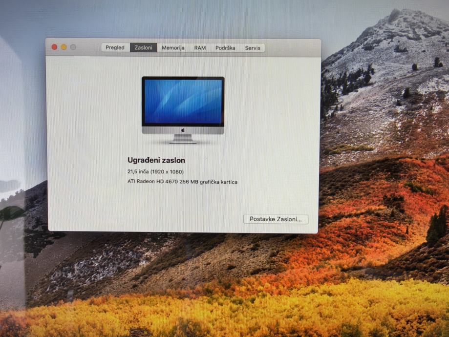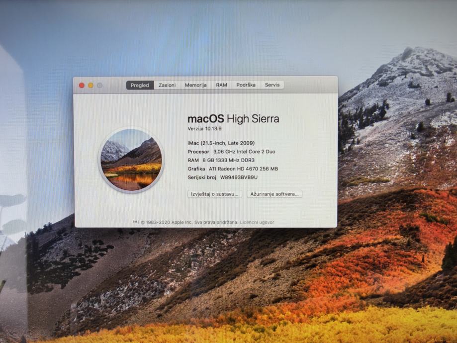 Apple iMac 21.5" (Mid 2009), All-In-One, macOS High Sierra 10.13.6 u potpunosti ispravan i u urednom stanju. Odličan za osnovne zadatke: internet, YouTube, Kamera, mikrofon, odlični zvučnici. Odličan za gledanje filmova zbog super dobre rezolucije što ga i razlikuje od Windowsa. Idealan kao Apple desktop za osnovnu upotrebu ili kolekcionare.