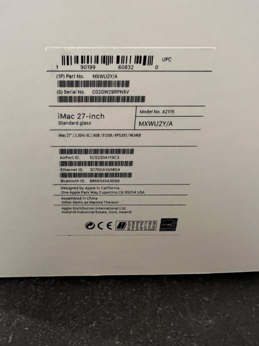 Apple iMac 27” 5K, model A2115, 2020. godina