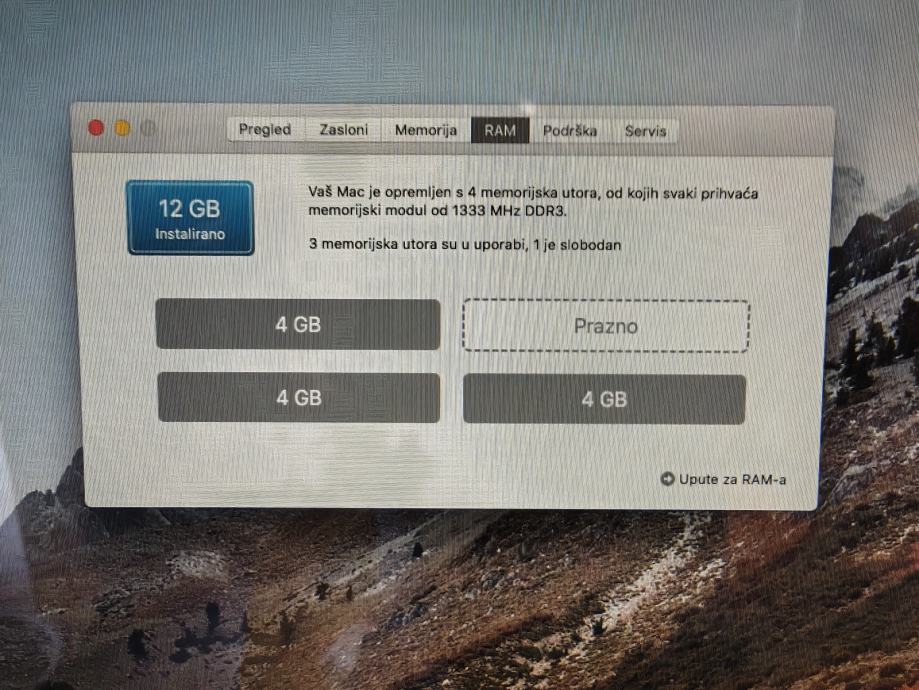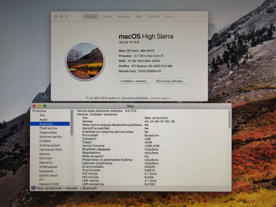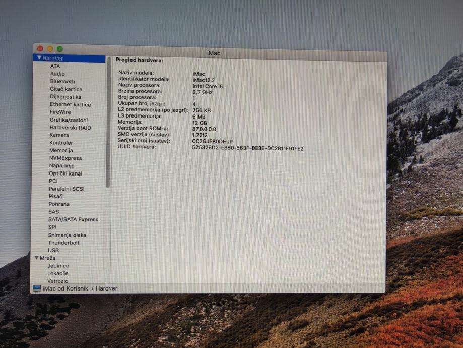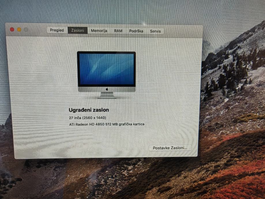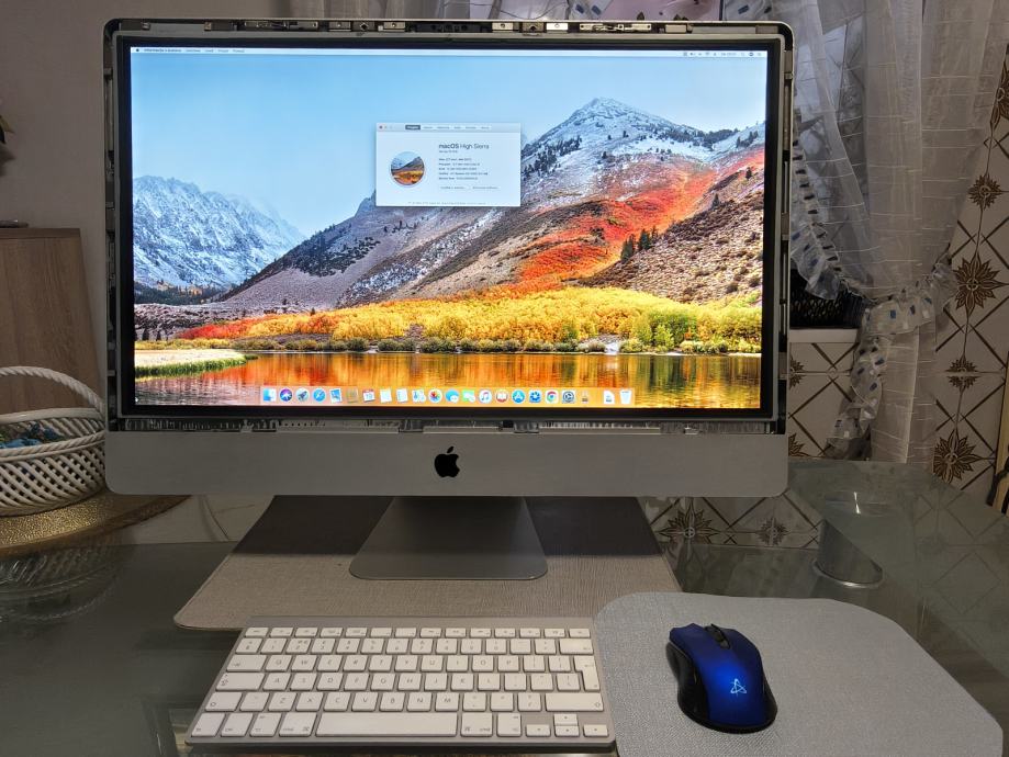 Apple iMac 27" (Mid 2011), All-In-One, macOS High Sierra 10.13.6 ispravan i u urednom stanju. Odličan za osnovne zadatke: internet, YouTube, Kamera, mikrofon, odlični zvučnici. Odličan za gledanje filmova zbog super dobre rezolucije što ga i razlikuje od Windowsa. Idealan kao Apple desktop za osnovnu upotrebu ili kolekcionare. Jedini problem je što mu je napuknulo zaštitno staklo ali ne smeta gledanju, ekran je cijeli i koristio sam ga bez tog zaštitnog stakla kao što se vidi i na fotografijama. To staklo se lako zamijeni jer je na magnete ali se može i ovako koristiti ( zato ga i dajem malo jeftinije zbog toga stakla).