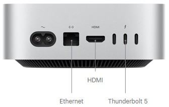 3x Thunderbolt 5 (USB-C) do 120 Gbps, 2x USB 3 (USB-C) do 10Gbps