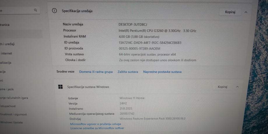 Asus H81M-K, Intel G3260, 8gb ddr3, 240gb SSD, 500w napajanaje, MS kučište, Instaliran licencirani Windows11 (slikano sa jednom memorijom od 4gb kasnije dodana još jedna od 4gb)