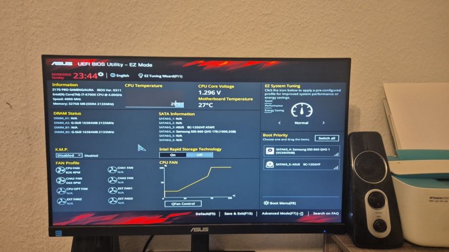 RAM: G.Skill Trident Z (32 GB) 2×16 GB DDR4 2133 MHz (1 RAM modul neispravan)