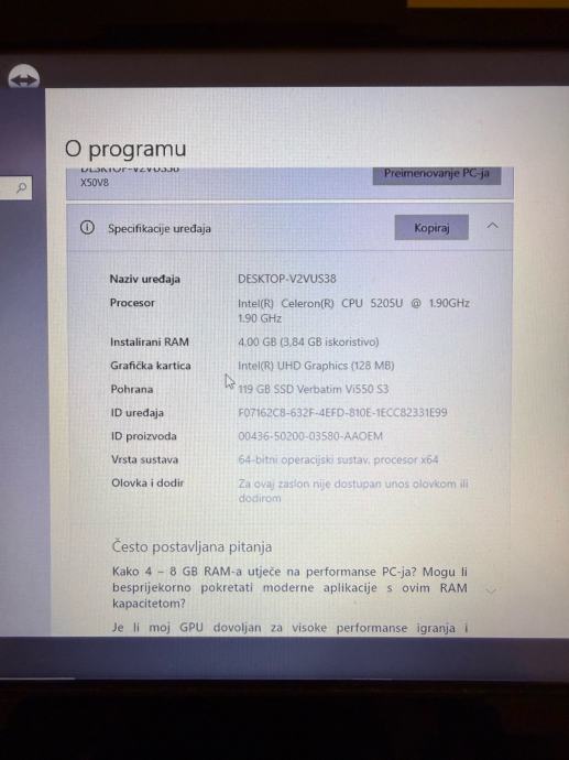Grafička kartica: Intel UHD Graphics (128 MB)