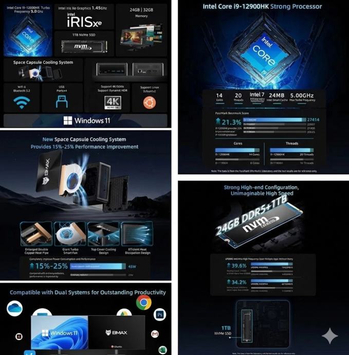 BMAX B9, i9-12900, 24GB DDR5, 1TB SSD, W11 PRO