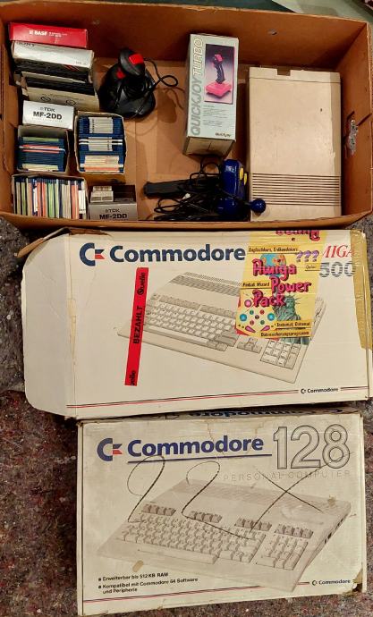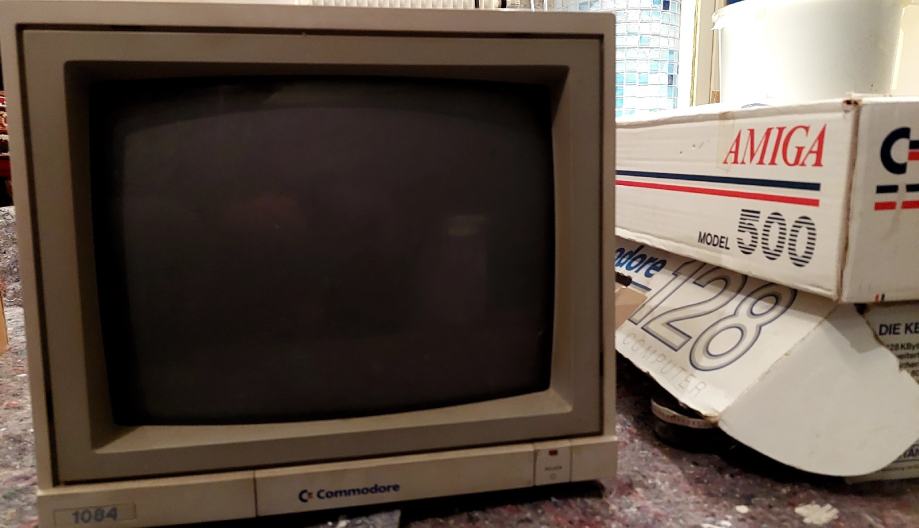 Amiga ima svoj monitor, 128-ica ima flopy disk.