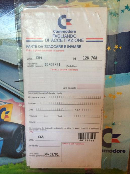 Retro primjerak kolekcionarskog računala sa neispunjenim jamstvenim listom te originalnom ambalažom.