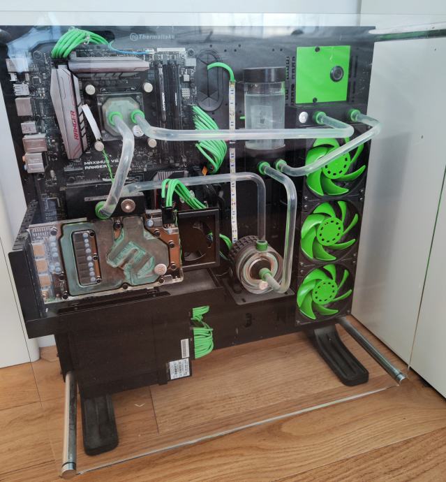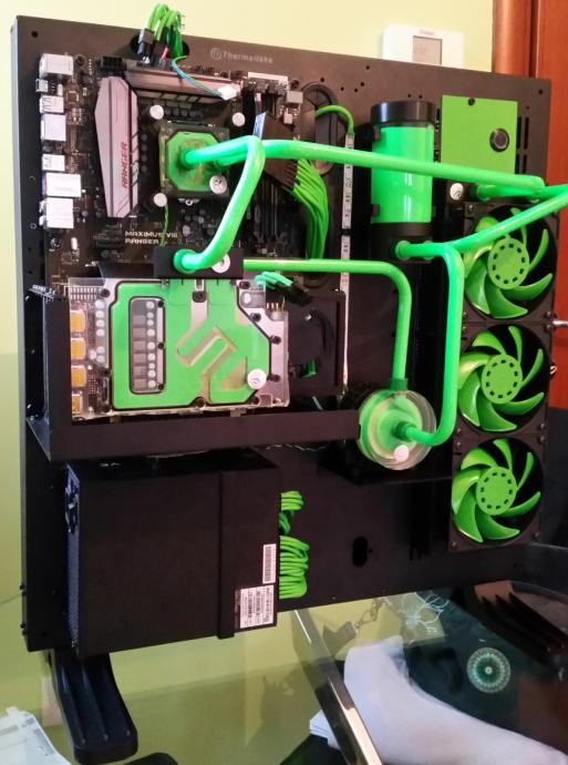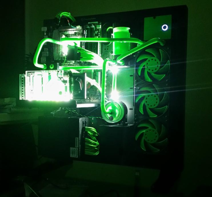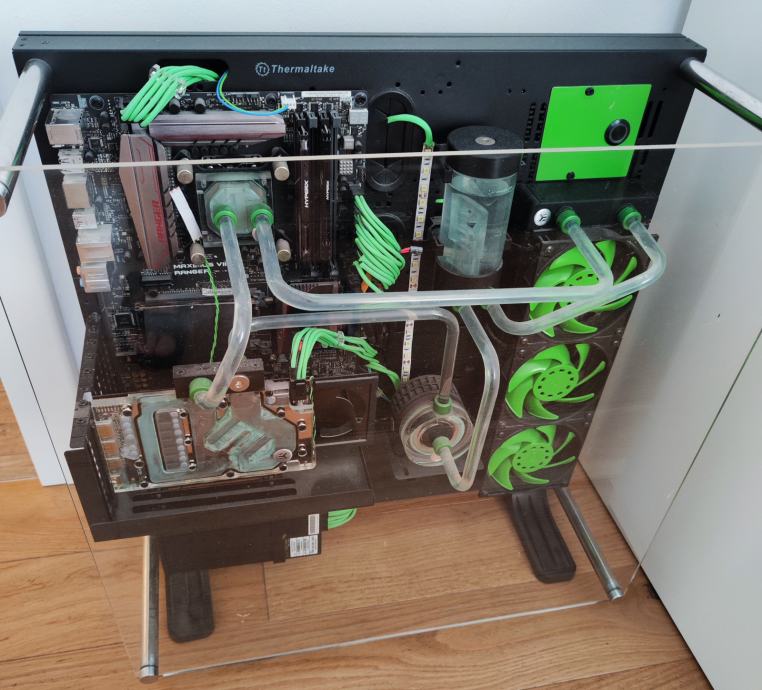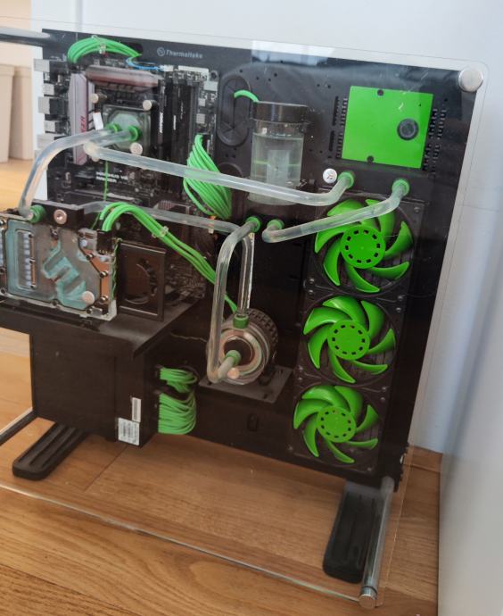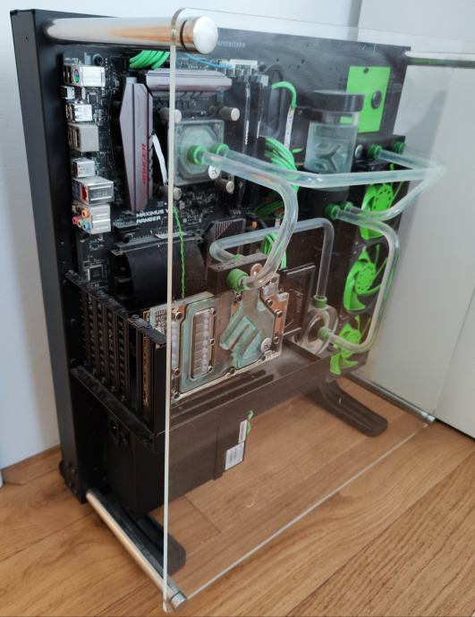Prodajem custom vodom hlađeno stolno računalo. I dalje sve uredno radi bez leaka, temperature nikad prelazile 65C, lagano se overckloka preko 5Ghz, dokaz na bug.hr forumu. Razlog prodaje je: nemam vremena za korištenje i održavanje. Također može kao ukras stajati na zidu :D