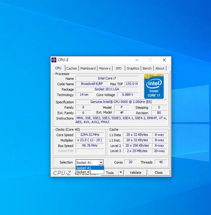 2. CPU: 2 komada Xeon E5-2698 v4 ES (20c/40t) = Ukupno 40 jezgri 80 threadova
