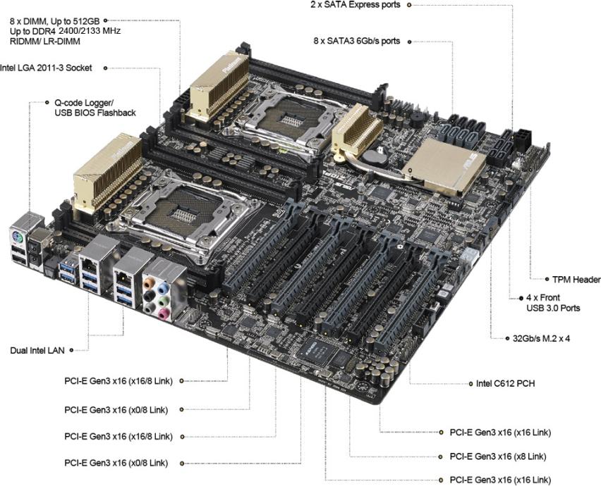 1. MB: Asus Z10PE-D8 WS(intel C612 chipset, socket 2011-3) prima Xeone E5 - v3 i v4