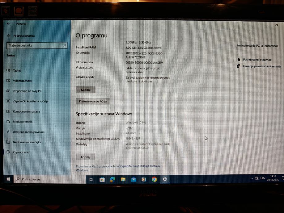 Ispravan, original Windows 10 professional, Microsoft Office 2007. Priključci svi na slikama