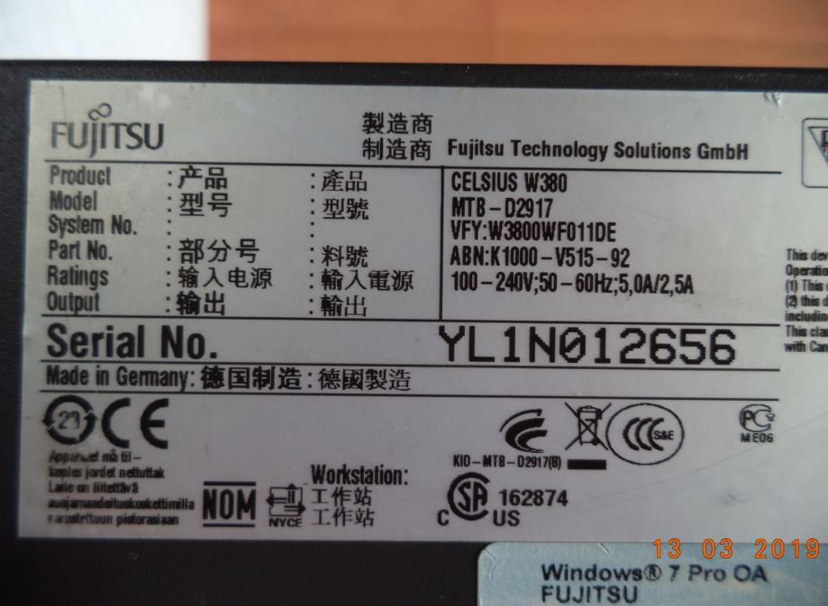 Prodajem 100% ispravno i uščuvano desktop računalo FUJITSU CELSIUS W380 s Windowsima 10 za 800kn.