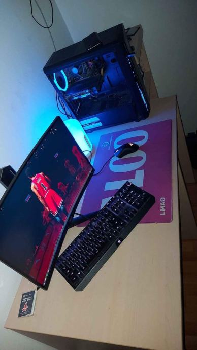 Tipkovnica je razer blackwidow, mis razer reathadder podloga limited edition od gallesandale i tu je drzac za kabel od misa. Monitor aoc 165 hz