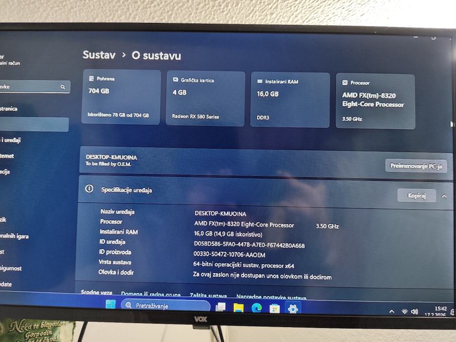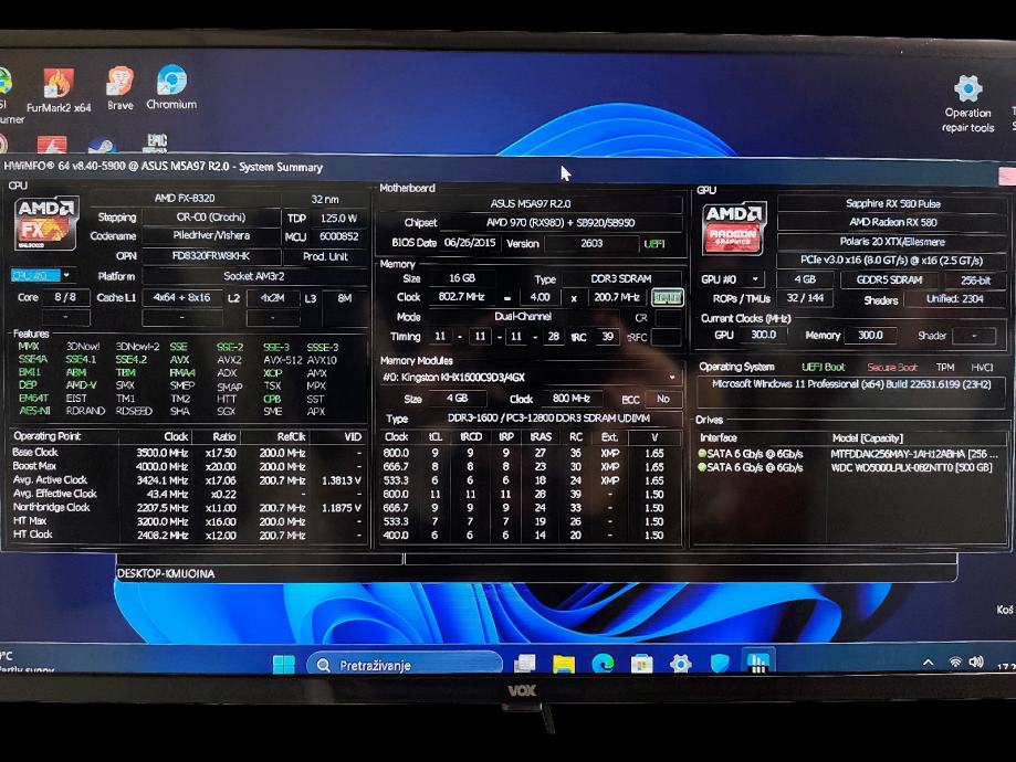 ✓Procesor: AMD FX-8320 8 jezgri (stock 3.5–4.0 GHz