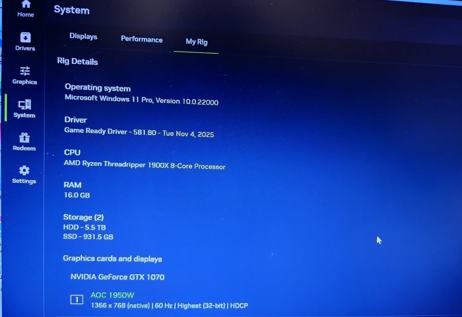 GAMING PC AMD Ryzen Threadripper 1900X, NVIDIA 1070 16GB, 1TB, 6TB