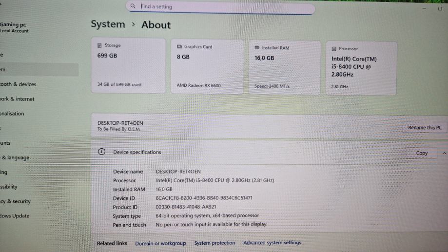 Gaming PC: Core i5 8400, Radeon 6600 8gb, 16gb ddr4, ssd, win 11