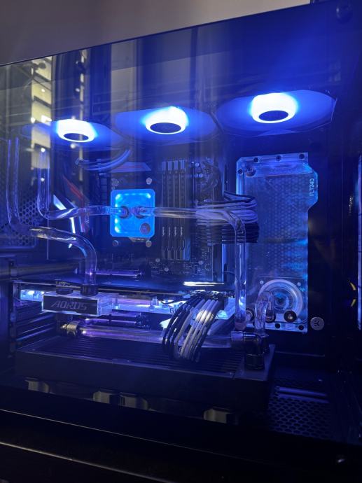Prodajem slozeni custom gaming pc. Kompjuter je kompletan na vodenom hladenju od ekwb-a. Graficka je najjaca 2080ti koja se mogla kupit (ima tvornicki vodeni blok na sebi). Kompjuter pokrece bilo sto u 2k i 4k rezoluciji na visokim postavkama. Temperature su puno nize i stabilnije od klasicnog zracnog hladenja. Sve je nanovo slozeno tako da ne trazi nikakva odrzavanja. Od komponenti ima: