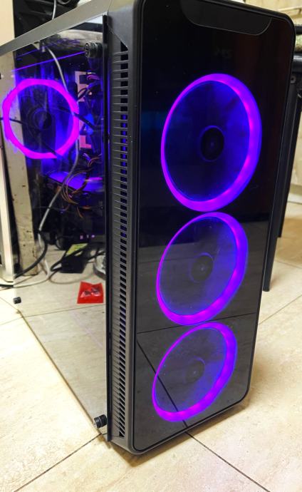 Kučište novo sa prednjom i bočnom stranicom od stakla sa 4 rgb ventilatora ( mijenjaju boje, al se ne može vidjeti na slici ).