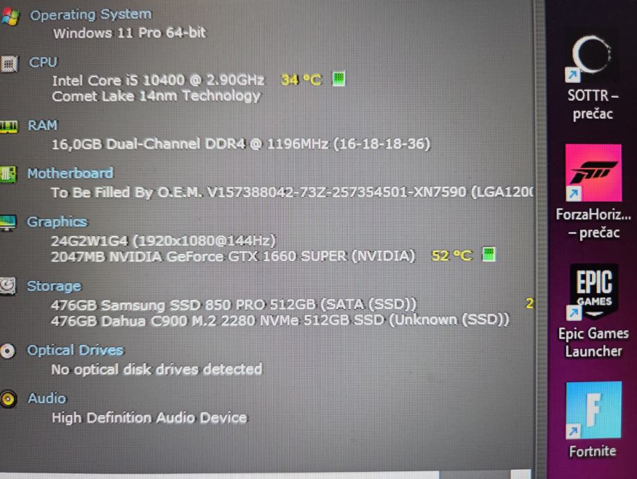 CPU-------------I5 10400 4,3 MHz ---6 fizičke i 12 logičkih jezgri