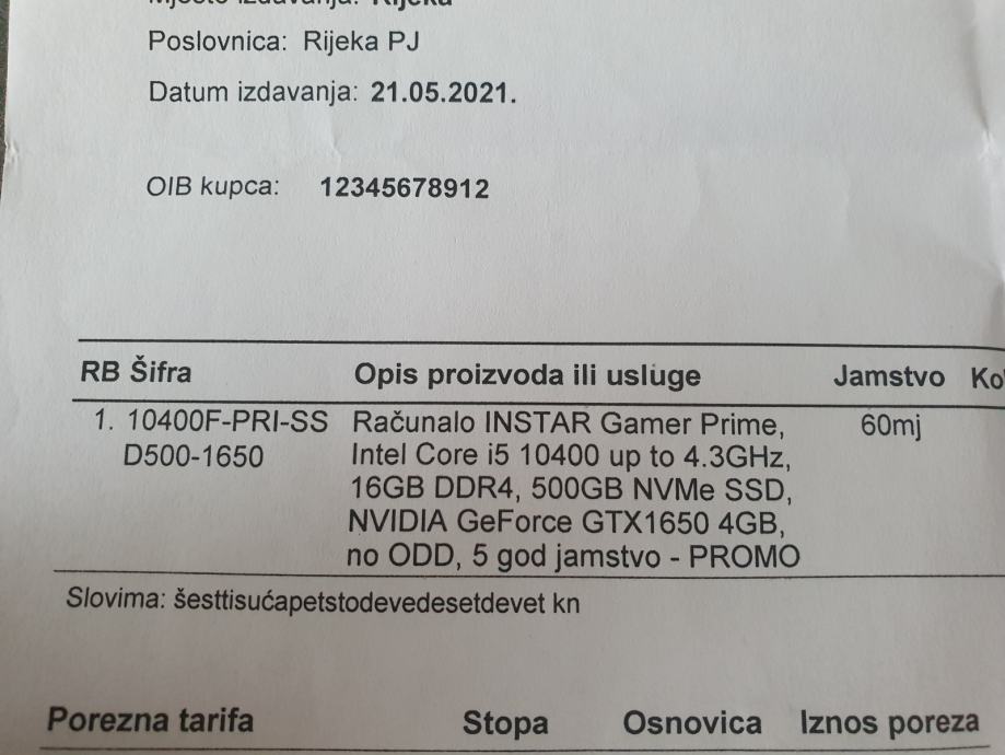 Računalo kupljeno u Instaru prije 3god sa garancijom od 5 godina..posjedujem račun