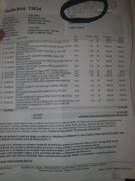 Sastavljeno 2019 godine...sva ambalaža i računi-napajanje još u garanciji