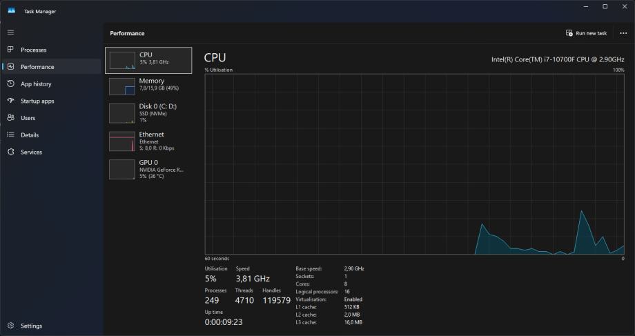 Procesor: Intel Core i7-10700F (8 jezgri / 16 threadova, boost do 4.8 GHz)