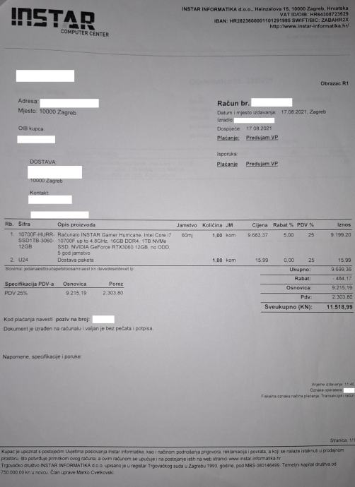 Na upit pošaljem dodatne informacije o performansama. Uz računalo dolaze svi papiri i garancija.