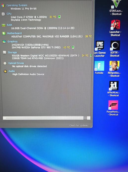 Gaming PC..I7 6700K--Gtx 980Ti 6Gb..SSD + HDD..WIN 11-OFFICE.IGRE