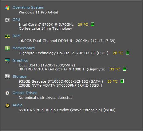 Gaming PC (Intel Core i7-8700K CPU @ 3.70GHz, GeForce GTX 1080 Ti) ✅