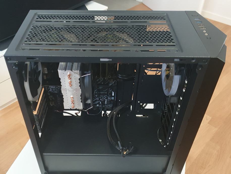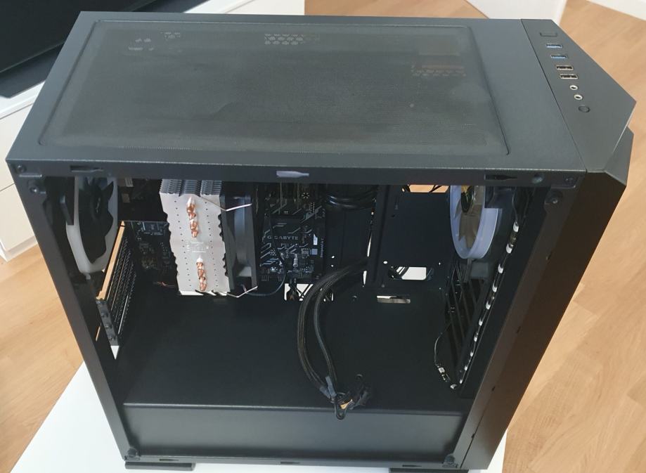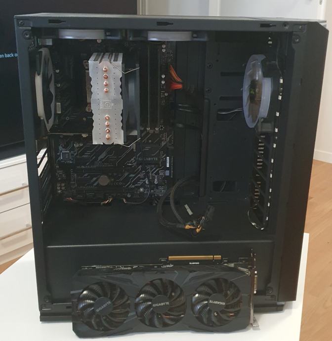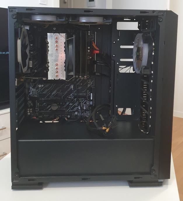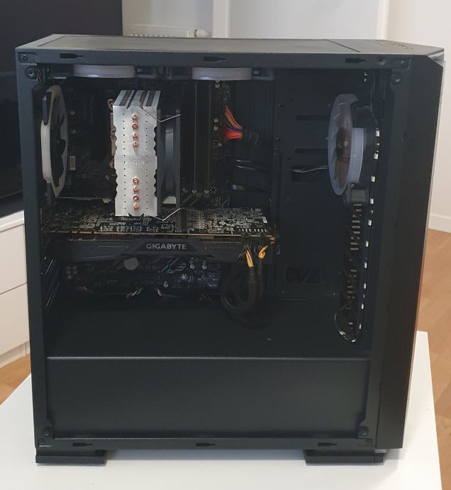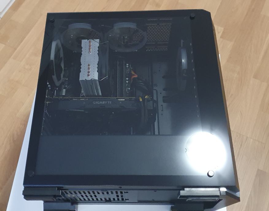 Kučište: MS Black color + Tempered glass (staklena stijena) + 4 RGB ventilatora (2 gore, 1 naprijed, 1 iza) + LED RGB traka (daljenski za upravljanje svijetla na ventilatorima i LED traki)
