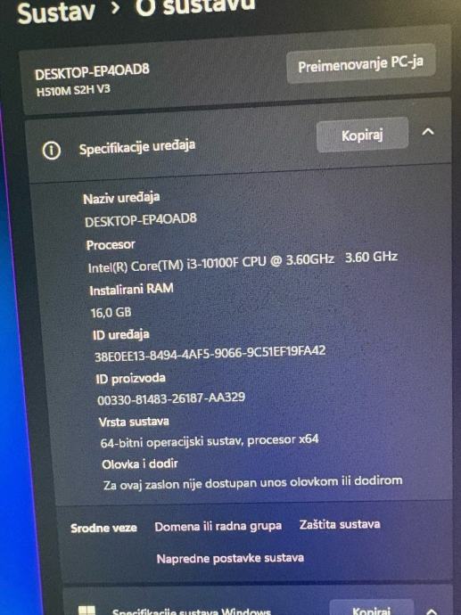 • Procesor: Intel Core i3-10100F @ 3.60 GHz (4 jezgra / 8 threadova)