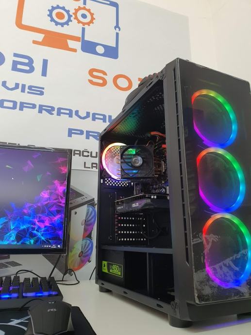 Gaming PC dolazi sa svim u kompletu što uključuje RGB kućište na kojem možete mijenjati boje te upravljati brzinom ventilatora, monitor Samsung zakrivljeni od 24" koji možete podesiti na visinu i nagib, vrhunske kvalitete odaziva slike, tipkovnica, miš, slušalice i podloga MS koji su također RGB.