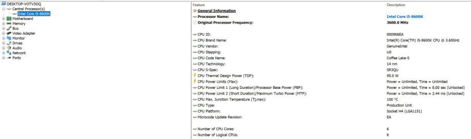 CPU: Intel® Core™ i5-8600K Processor 9M Cache, up to 4.30 GHz