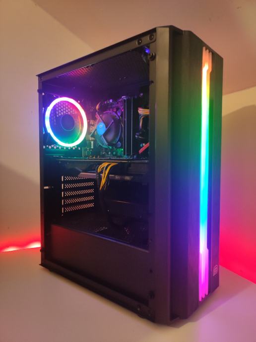 KUCISTE: BITFORCE RGB SA STAKLONOM STRANICOM PROZIRNOM TE RGB VENTILATOROM I LED TRAKOM KOJI MJENJAJU BOJU PRITISKOM TIPKE NA KUCISTU