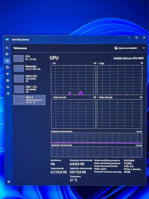 Grafička: NVIDIA GeForce RTX 4060 (8GB VRAM, Ray Tracing, DLSS)
