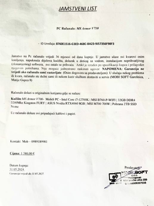 PC je u odličnom stanju, korišten samo za story mode igre na ultra settingsima s ray tracingom. Pokreće sve najnovije igre na ultra postavkama bez problema. Garancija do 31.05.2027!