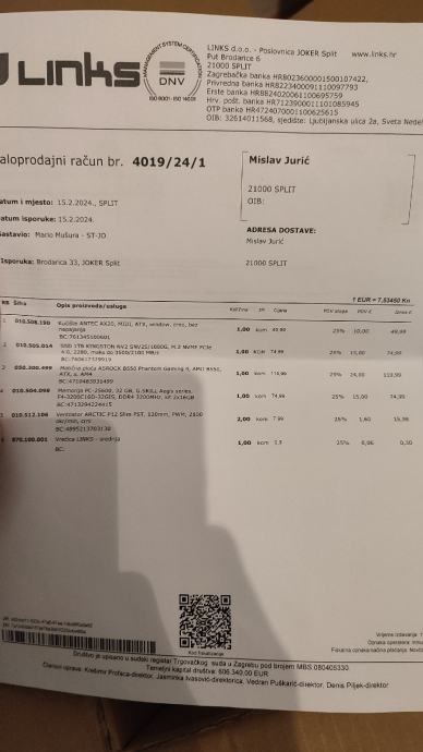 Garancija na sve komponente 36mj ili više.