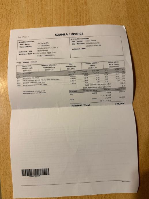 • RAM: 16GB DDR4 (2x8GB) Kingston Fury Beast 3200MHz – dovoljno i za zahtjevnije zadatke