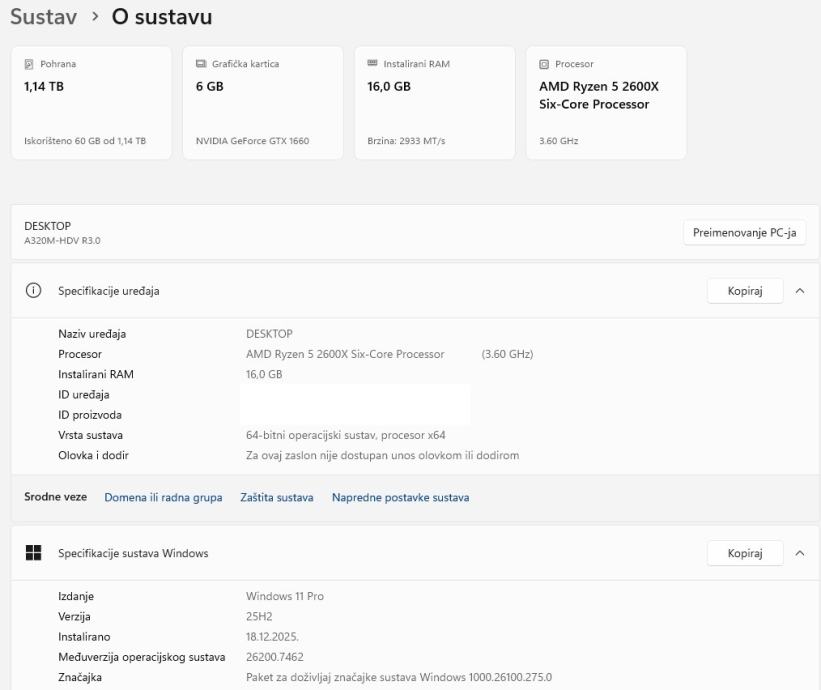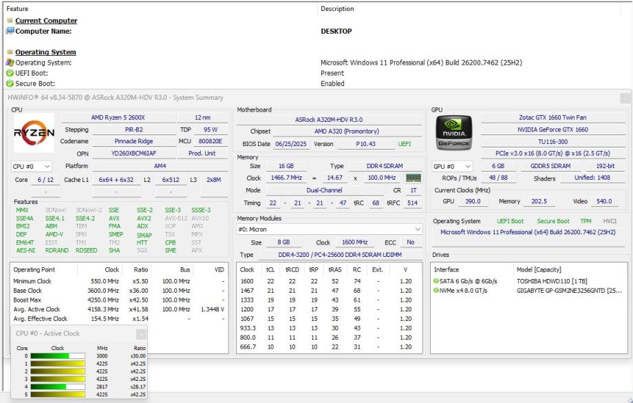 CPU: AMD Ryzen 5 2600X 6Core/12 Thread 3.60 - 4.25GHz Boost