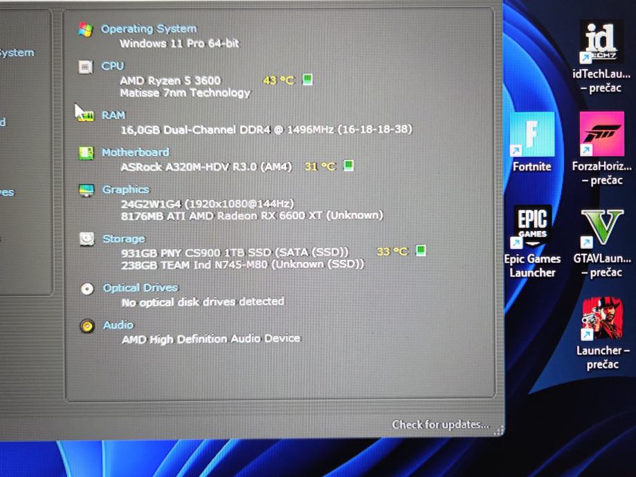 Pc dolazi sa instaliranim igrama Fortnite,Red Dead Redemption, Forza Horizont 5, Gta V, Cyberpunk...itd