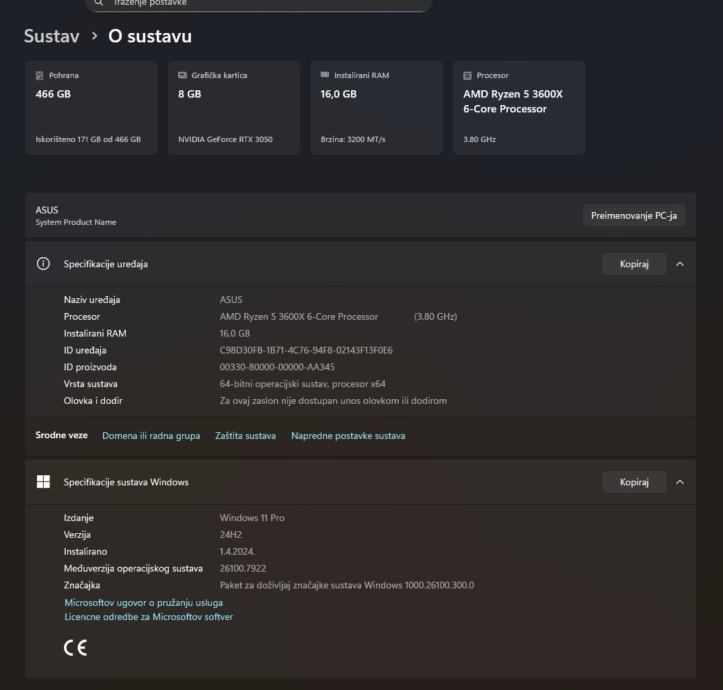 • GPU - Asus RTX 3050 8GB