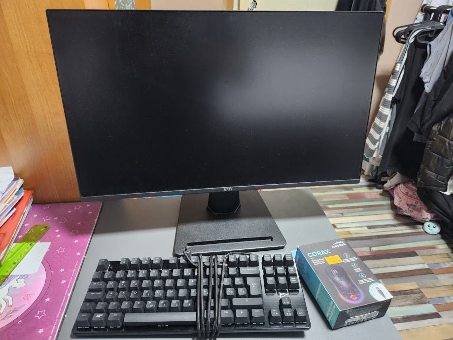 Od periferije dolazi samo kabel za napajanje i WiFi antene, no za 100€ uz kompjuter dajem MSI 1080p 100Hz monitor (model MP252), White Shark Spartan mehaničku tipkovnicu (plavi switchevi) i Speedlink Corax miš.
