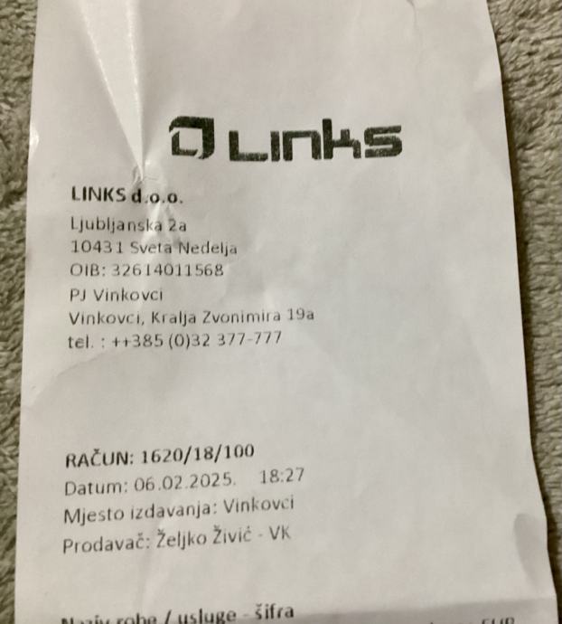 Samo osobna provjera kod mene i prodaja, slanje isključeno.
