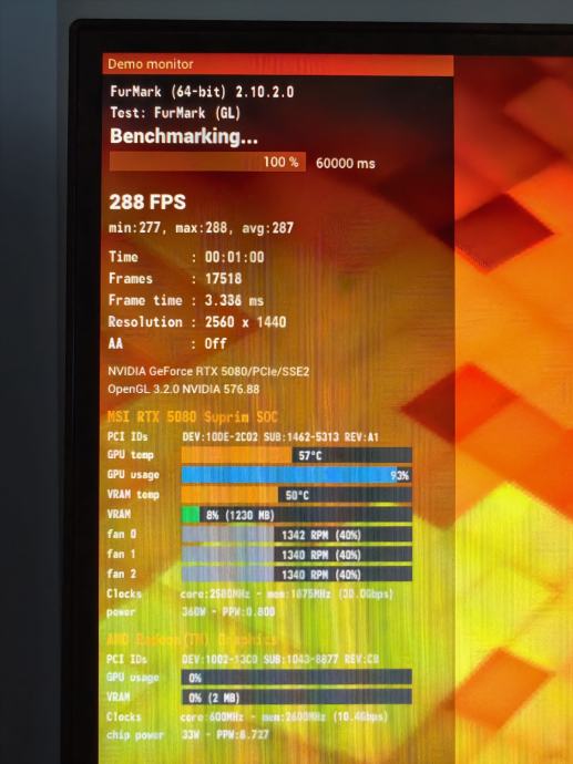 - MSI Suprim X RTX 5080 SOC nova sa slikom furmark stres testa ( jako hladna grafika) takoder stavljen je Riser cable