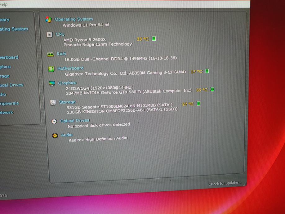 GAMING PC--Ryzen5 2600X + GTX 980 Ti 6Gb..RAM 16Gb.M2 SSD+HDD-Win 11