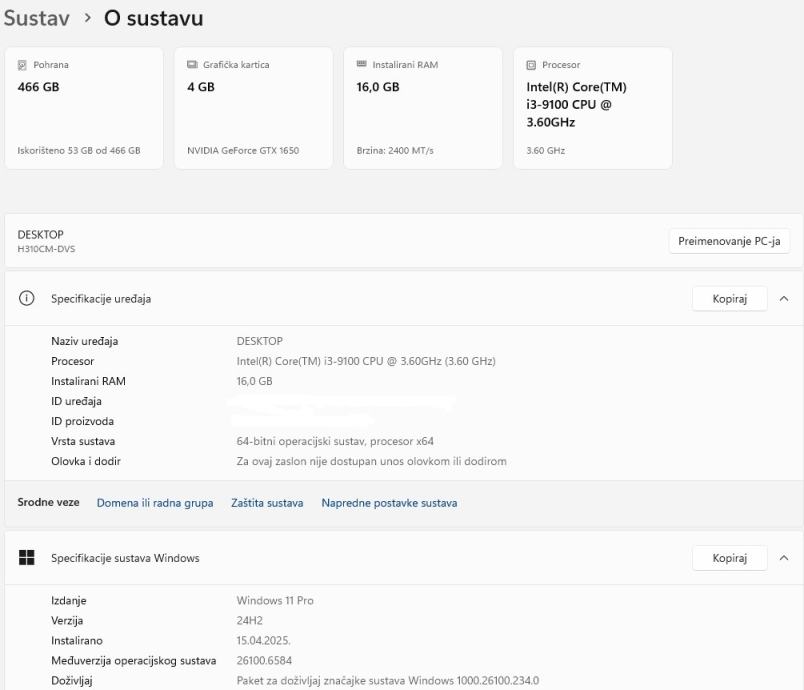 Gaming Računalo i3-9100 * GTX 1650 * 500GB SSD * 16GB DDR4