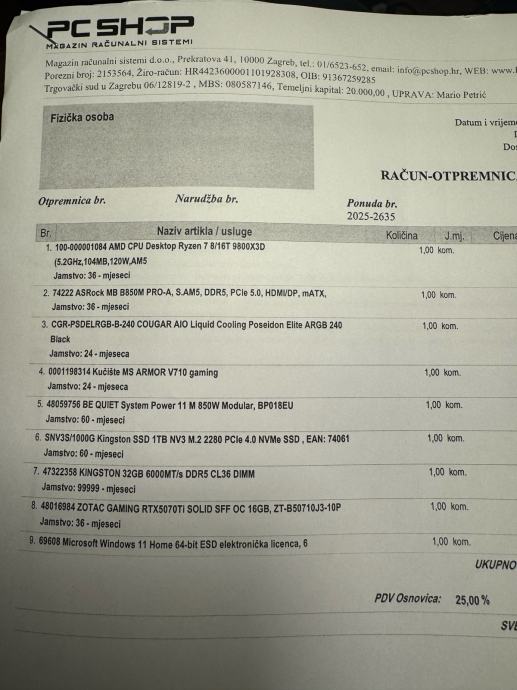 Gaming računalo kao novo, kupljeno u 9. mjesecu 2025. u PC Shopu. Vrlo malo korišten. Podesivi LED. Prodajem i monitor (po želji): https://www.njuskalo.hr/led-monitori/alienware-aw2725df-qd-oled-oglas-49195084
