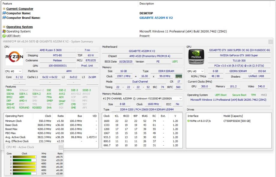 GPU: NVIDIA GeForce GTX 1660 SUPER 6GB GDDR6 Gigabyte
