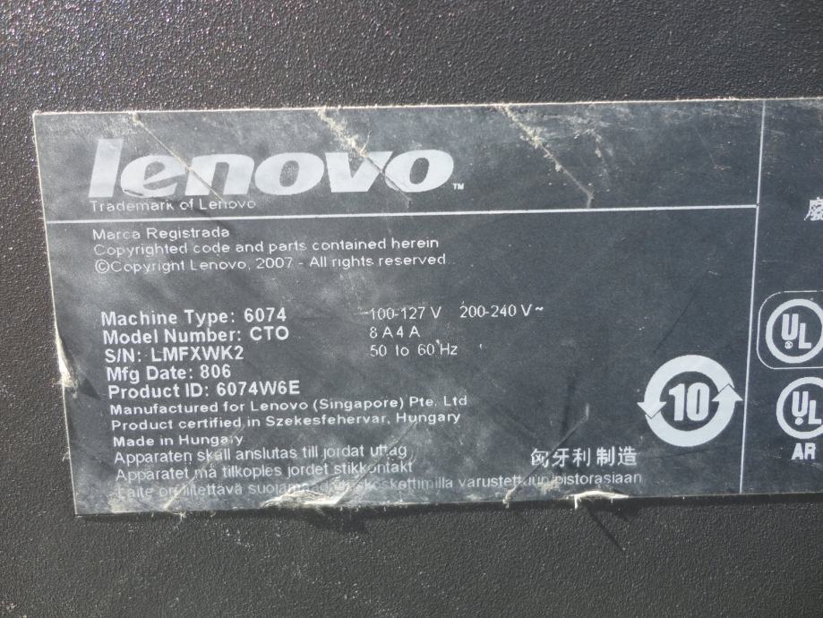 ♦ MODEL: Lenovo Thinkcentre CTO-6074