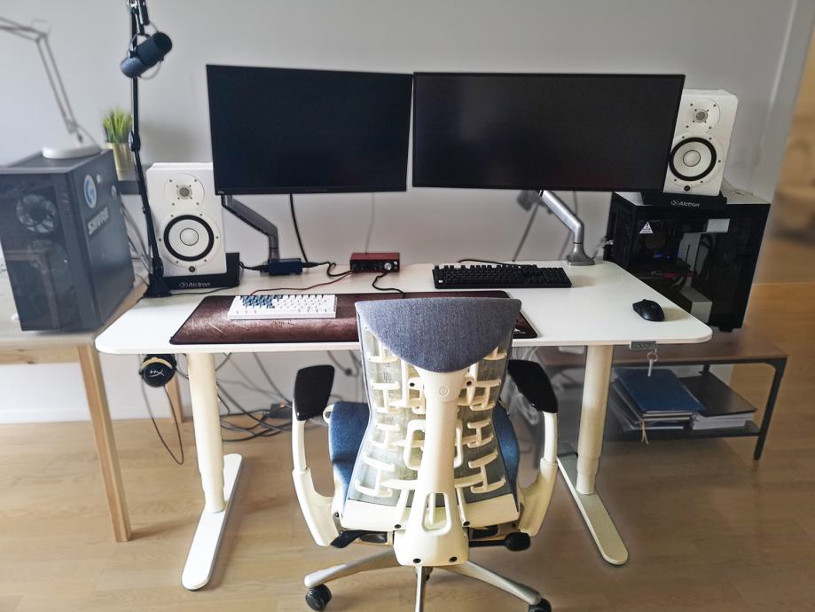 Monitori na slici nisu na svojim nosačima već na IcyBox IB-MS503-T nosačima (VISA mount) jer mi nisu bili dovoljno visoki za razinu očiju, te ih je tako moguće staviti u ravninu ili bilo koji položaj.